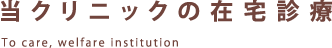 当クリニックは医療的な部分がカバーできればよいという考えは無く、いかにご自宅での生活に満足いただけるかを考えています。ご自宅に帰られて、どのような生活が送りたいのかをしっかりとお聞きし、皆様の生活に少しでも多く笑顔が増えるよう尽力しています。